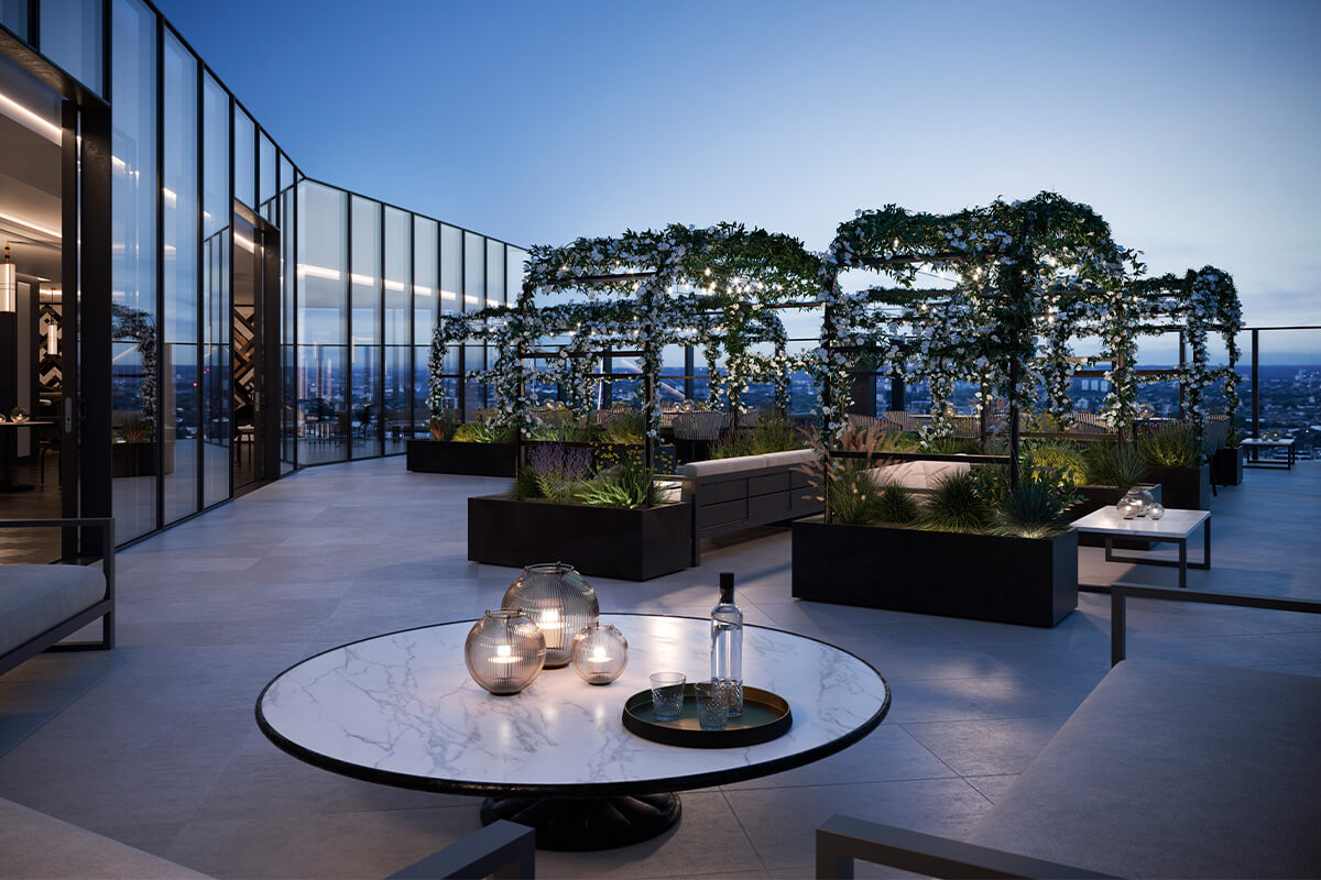 By night, The Stage invites you to indulge in exquisite London views from the 32nd-floor sky lounge and terrace, a one-of-a-kind rooftop sanctuary and entertaining venue exclusively available to you and your guests.