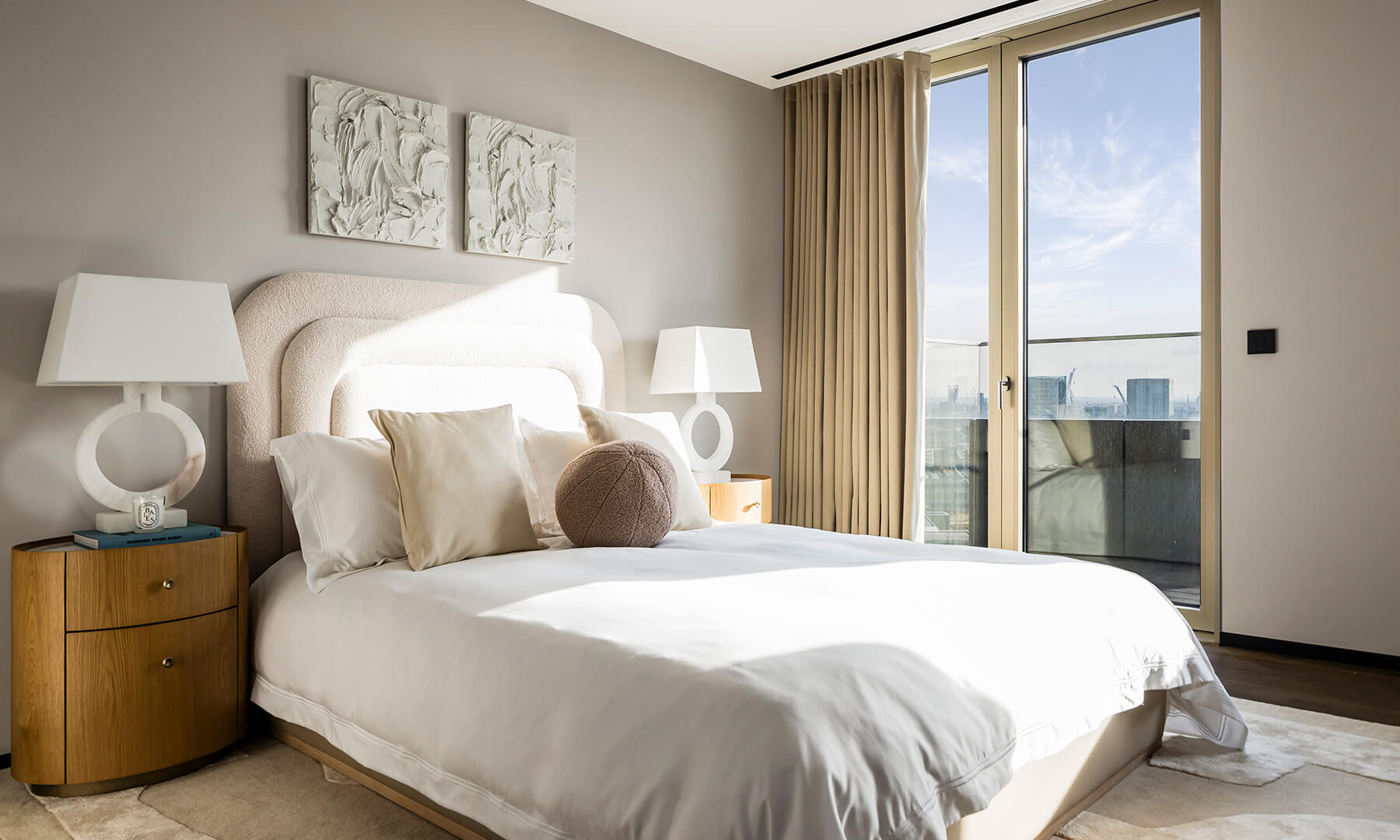 World-class living at The Stage extends beyond the residences, offering its residents access to private amenities, including one of London's most picturesque sky terraces. Additional amenities include two cinema screening rooms, a bowling alley, a games lounge, a golf simulator, a gymnasium, and three business suites. A 24-hour concierge service managed by the luxury management company Rhodium provides a full range of tailored services to meet individual resident needs.